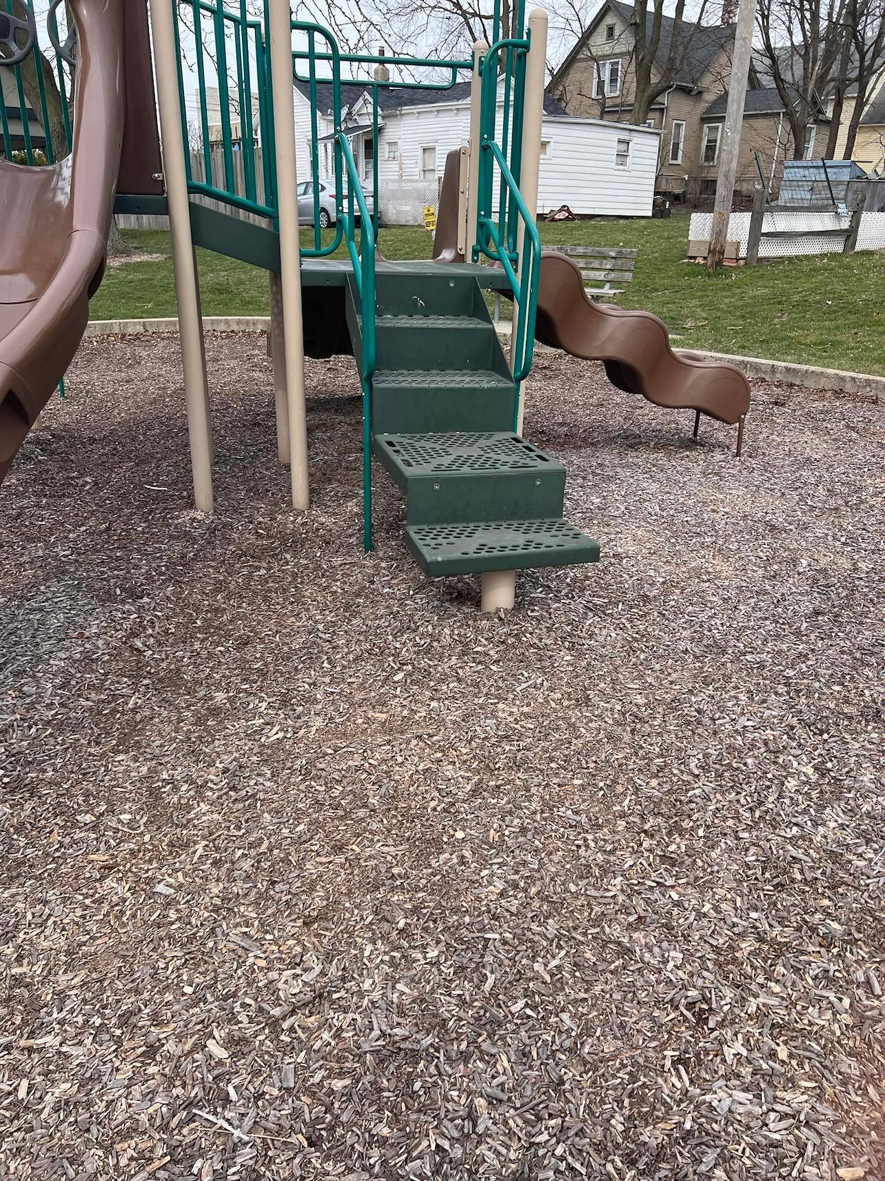 Elevated play components connected by ramps? x  No ramps connecting elevated play.