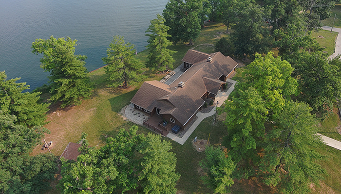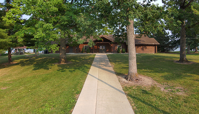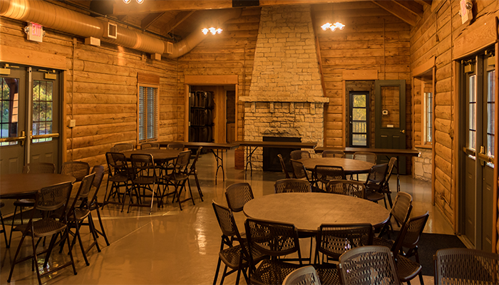 The original Davis Lodge was dedicated in 1932 in honor of H.O. Davis, editor of the Daily Pantagraph. The site of the lodge overlooks the widest expanse of Lake Bloomington and has been the site of various concessions and restaurants over the years. The original lodge had two huge fireplaces, which required 50 tons of stone to construct. These fireplaces remain and provide a warm atmosphere for rental guests. This beautiful log facility is now available for rent to the public for weddings, receptions, reunions, graduations, business meetings, and other functions.
